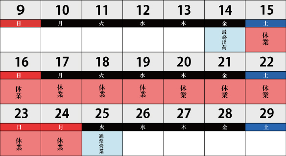 平素は格別のお引き立てを賜り厚く御礼申し上げます。 誠に勝手ながら弊社では、下記の日程で休業とさせていただきます。 休業中のお問い合わせにつきましては、休業明け11月25日(火)から順次ご対応させていただきます。 ご不便をおかけしますが何卒ご了承くださいますようお願い申し上げます。